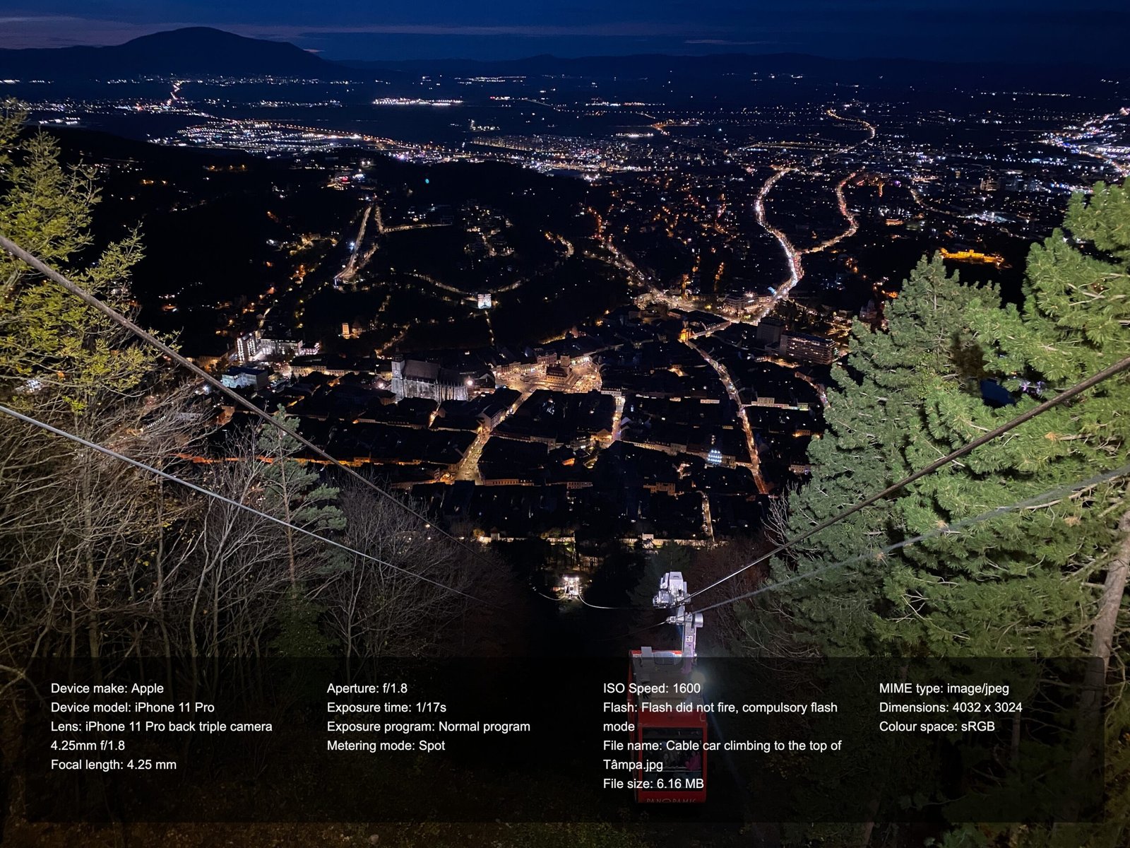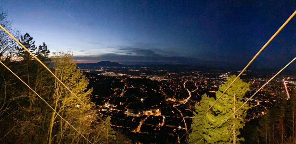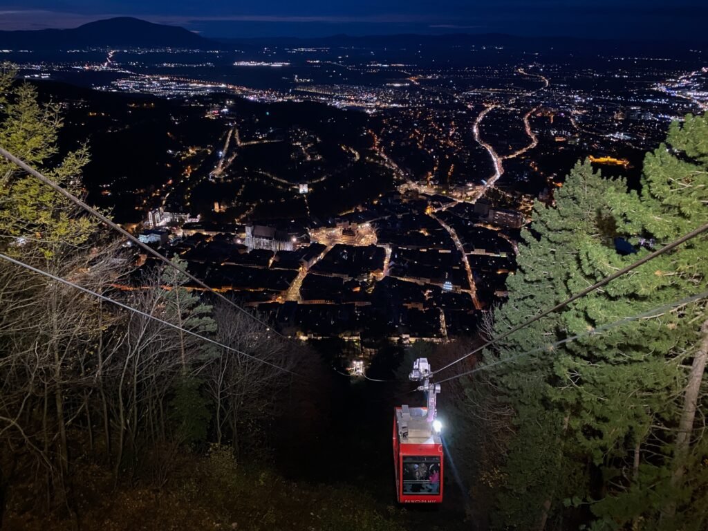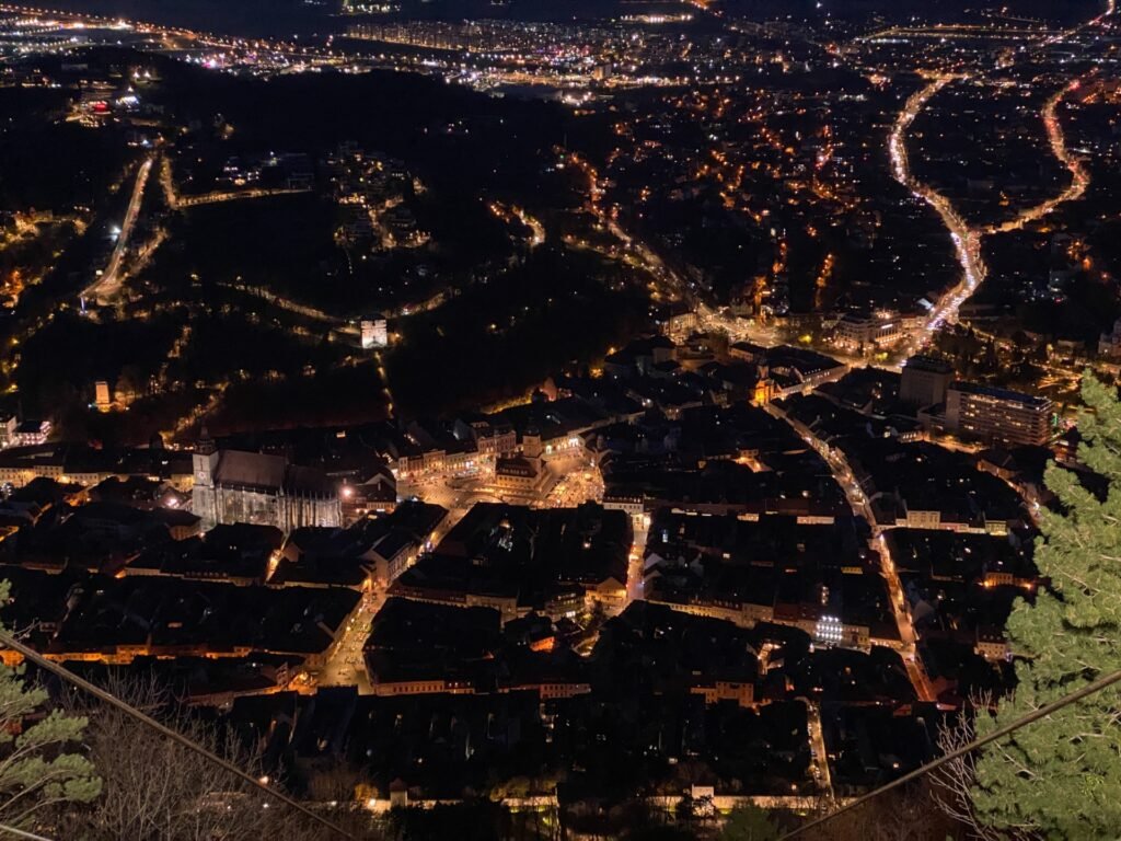 The ideal moment to get to the top of Mount Tâmpa is right before sunset. After taking a few photos and having a drink at the Panoramic Café/Restaurant, it’s time to head back down. It’s now night, and Braşov looks even more beautiful when it’s dark. Don’t just take my word for it – take a look at these pictures.