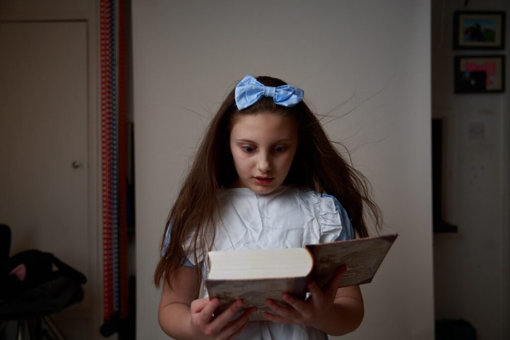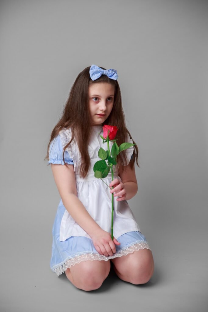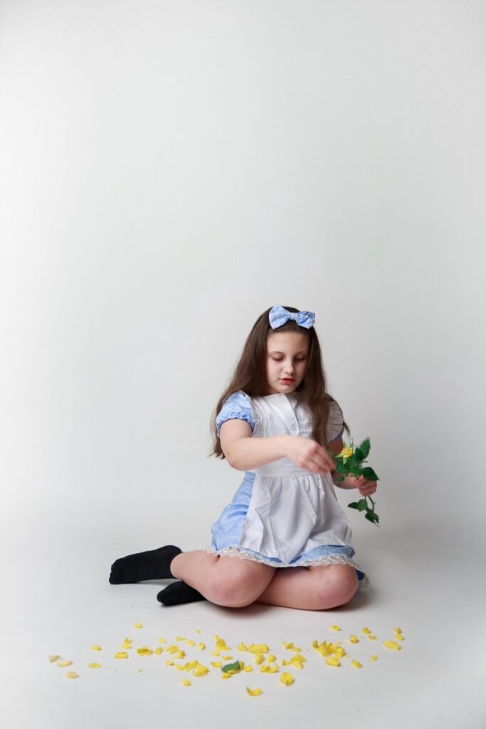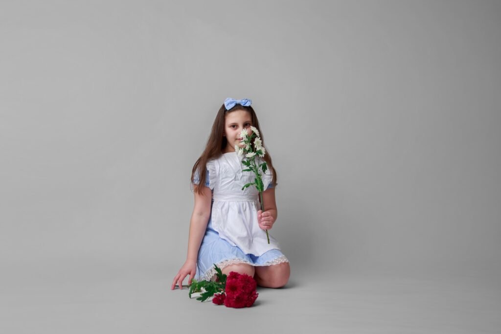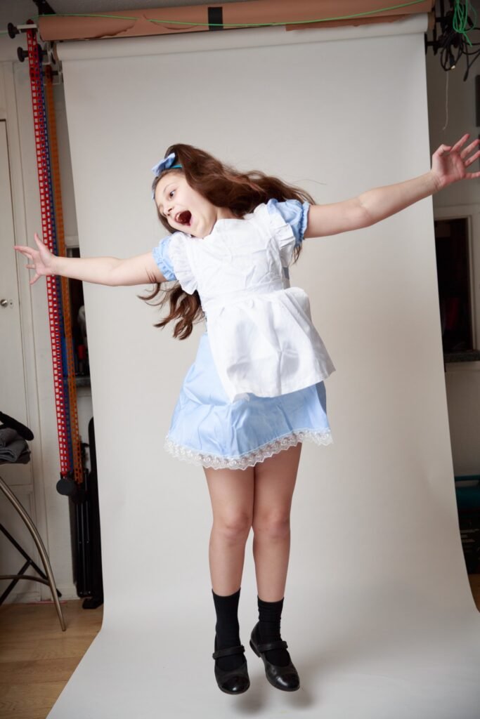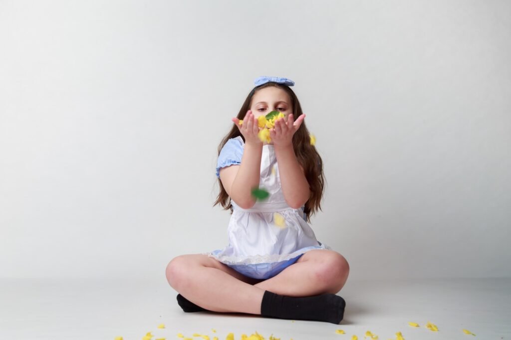 I have uploaded my favourites into ChatGPT and utilise a prompt similar to the following: “create the scene with my daughter unchanged, placing her into a whimsical Alice in Wonderland environment (for example: giant mushrooms, floating teacups, playing cards, magical forest floor, etc.) while keeping her pose, flowers, book and clothing exactly as they are.”